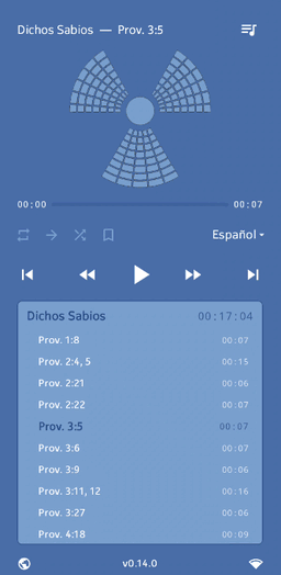 The same playlist can be played in any of the available languages: Danish, Dutch, English, French, German, Italian, Korean, Polish, Portuguese, Spanish, or Ukrainian. Scripture parsing (for playlist generation) can also handle all these languages as input.